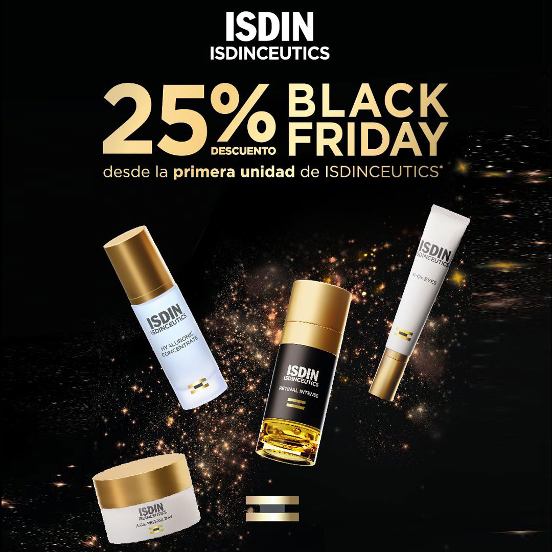 *Promoción consistente en aplicar un 25% de descuento sobre el PVP por la compra de una unidad de Isdinceutics, excluyendo las referencias de 5 o menos ampollas y packs promocionales.